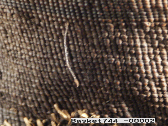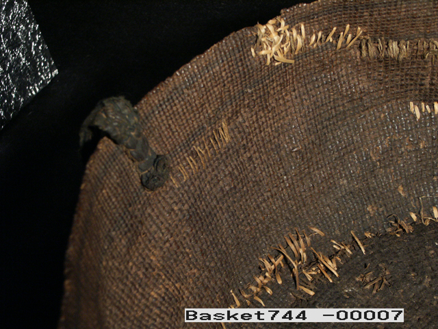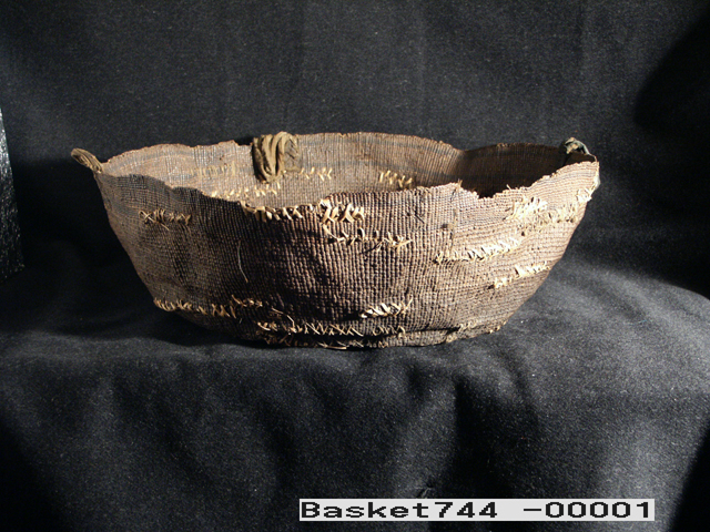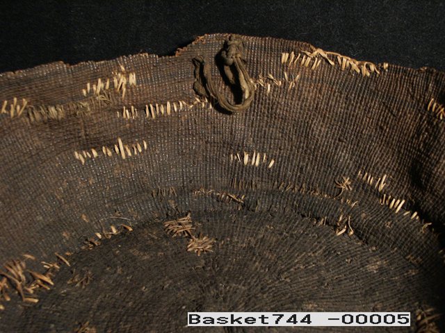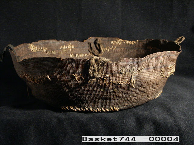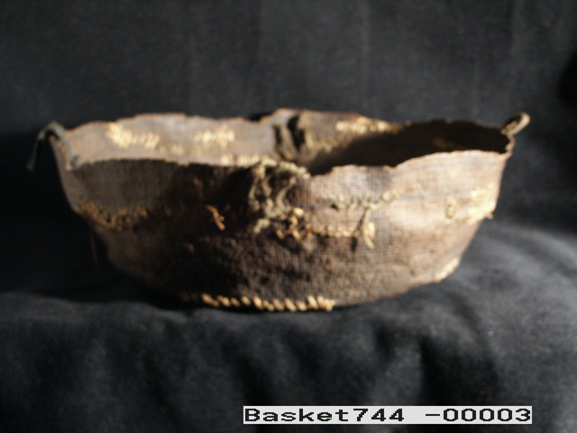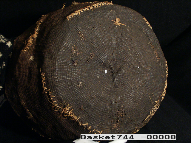 Skip Random Basket Random BasketThis large spruce root berry basket with the four tabs was made by Mrs. Mary Miller, a Thlingit Indian woman in Juneau, Alaska in 1906. Mrs. Miller gave this basket to her daughter, Mrs. Mary Skeek. Mrs. Skeek, whose birth date is 9-30-83, was married in Kake, Alaska and resides there now with her son and daughter-in-law, Mr. and Mrs. George Skeek (Helen). Purchased from Mrs. Helen Skeek, Kake, Alaska July 1967. |