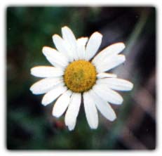 member of the composite family has white petaled ray or edge flowers on