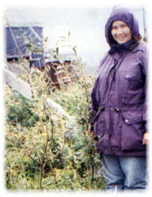 Unlike chura, the willow from which leaves are eaten in early summer, the stem of nanngingnuaghak is eaten after the new shoot of the stem is about a foot long. The new shoot is cut from the shrub and the bark is stripped away. The tender young wood is chewed for the flavor. Ruth Sellers, Maggie Olson's sister, told me that nanngingnuaghak stem taste just like honeydew melons. I found the plant, peeled the bark, and chewed it like I was told; but, I was in Golovin later in the summer and my sample was fibrous, tough, and chewy. There was a slight flavor of honeydew but the juices that run thick in the plant early in the summer had dried up and I was unsuccessful at eating the nanngingnuaghak. I felt like a beaver trying to eat the woody stem of the plant. I will have to try the plant in early summer when the sap in fresh and the wood is tender. |