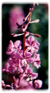 The flowers bloom from the bottom of the flower stalk toward the top as summer goes on. When the bottom flowers begin to seed and the top flowers are almost done blooming, summer is almost over. The name of this plant is my namesake. Maggie Olson's grandmother, the woman who raised her, whom Maggie called "Mama", and whom I am named after, was pamutuq. She always called fireweed pamutuq and it is nice to think her and these beautiful flowers that I am named after. The spelling here is with a "P" that is a "B" sound. I have always spelled my name with a "B" as in Bautnuq. I asked my grandma about this and she said that very few Eskimo words are spelled with a "B"; but, that it is right for me to use the "b" in my name. Early in the summer, the young Pamutuq plant are eaten mixed with other greens. The fresh summer salads are eaten with seal oil as the dressing. Many of the greens may be mixed together to add different flavors and textures to the salads. Later in the summer, when the flowers are in full bloom,