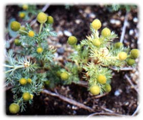 Pineapple weed is in the composite family, similar to the goldenrod and