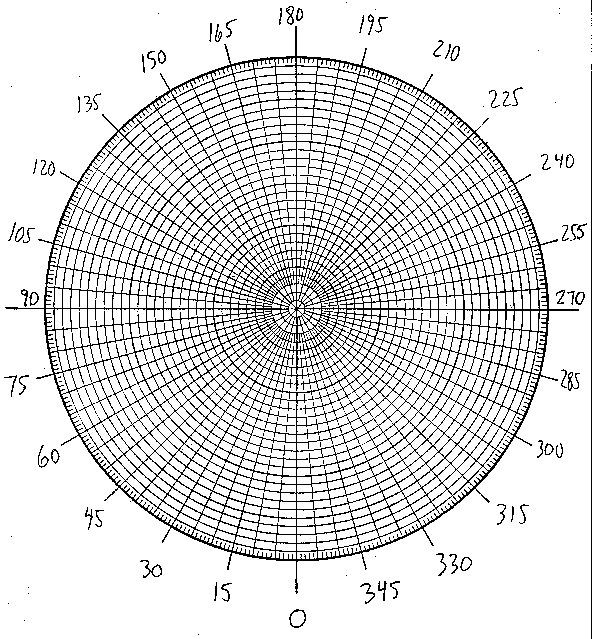 attached polar coordinate graph paper and colored pencils, draw the