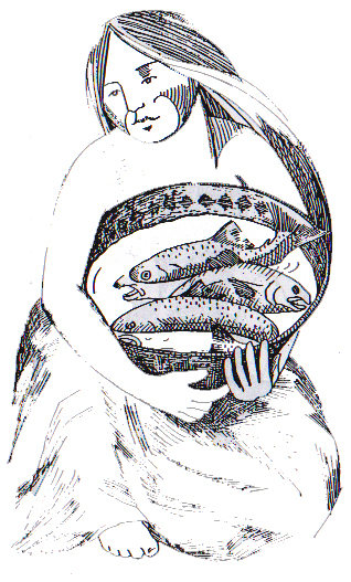 hands in the basket, and when she had finished, there were salmon in it. Soon,