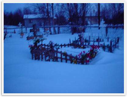 Everyone respected my grandpa, because he was very wise, and he was well known around the Yukon-Kuskokwim area. Everyone went to pay their respects to him and his family, and helped with the food, dishes, and things around the house that needed to be done. The men from Kalskag made him a very nice coffin, and they made him an even nicer outside cover to go on top of the grave. I remember the day, the gospel singers from Tuluksak came and sang a bunch of songs, in memory of my grandfather.