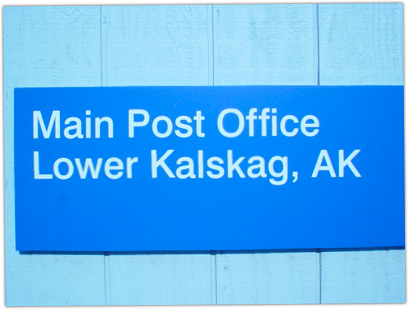 For some years the ost office served Lower kalskag, then it was replaced with a newer building near the smae area. Anna Nalette still works for the postal service at the new post office and Richard Nash is the agent. He receives the mail from the planes when they arrice in the village.