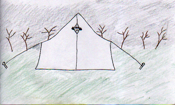 tent and tried to see them through the opening, but it was too dark