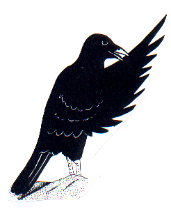 Then Raven told Mink to make a hole inside a fish tail. "I will go inside it. Maybe the one that is walking in its trail will swallow me. When it swallows me, I will cut through its chest and jump out. When it comes towards me, watch closely. When I jump out, you should spear it too. Maybe it will die then," he said. Mink agreed and he put the fish tail on the trail with Raven inside. After a while, something came. But when the grizzly opened its mouth to eat the fish tail, Raven cawed and flew up. He became scared and did not stay inside the fish tail. The grizzly ran into the brush, too.