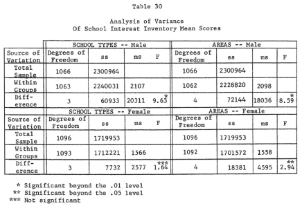 Eleventh Grade Fall 1966-Spring 1969, By Area