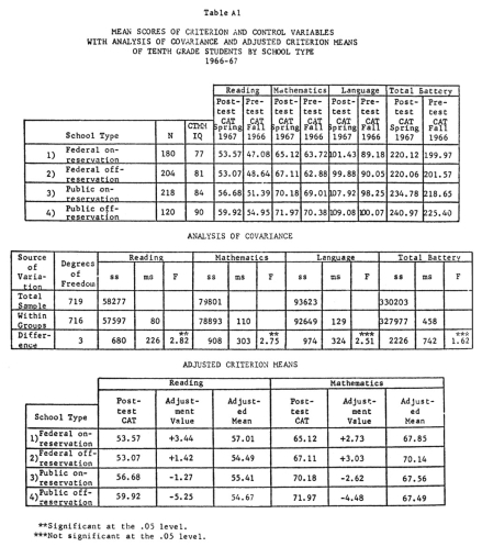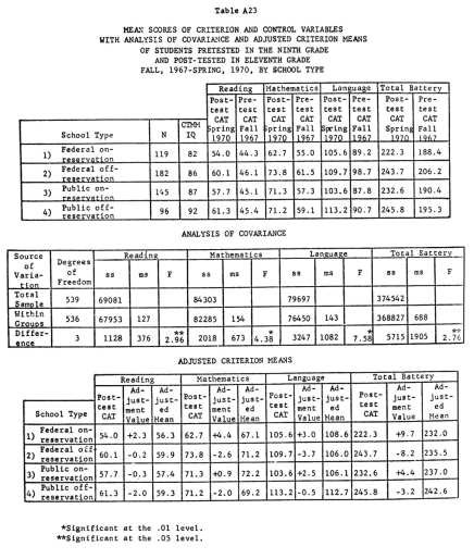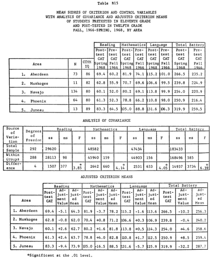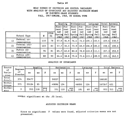 Analysis of Covariance and Adjusted Criterion Means of Students