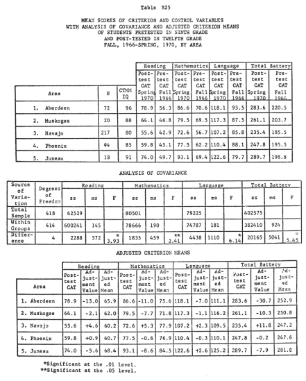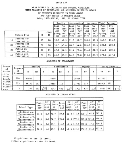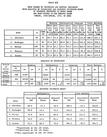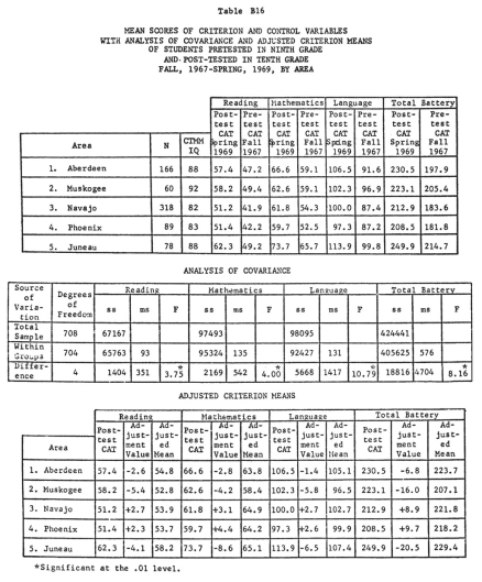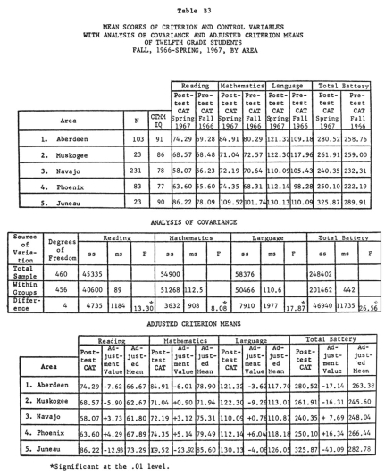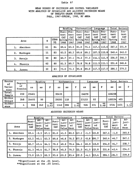 Analysis of Covariance and Adjusted Criterion Means of Twelfth