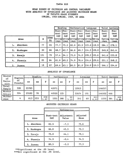 Adjusted Criterion Means of Twelfth Grade Students Spring 1968-Spring
