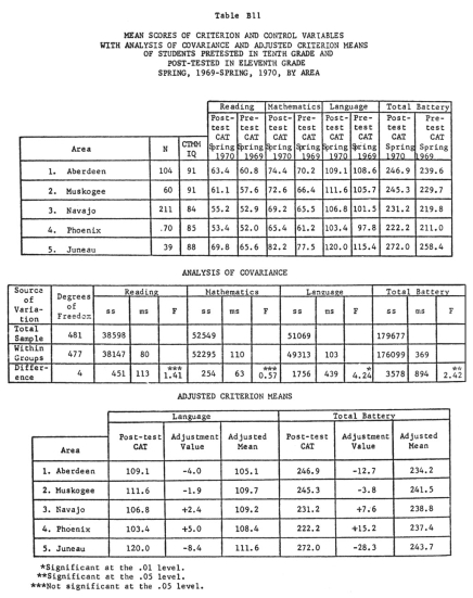 of Covariance and Adjusted Criterion Means of Eleventh Grade Students