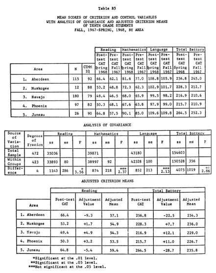 and Post-Tested in Eleventh Grade Fall 1967-Spring 1969, By Area
