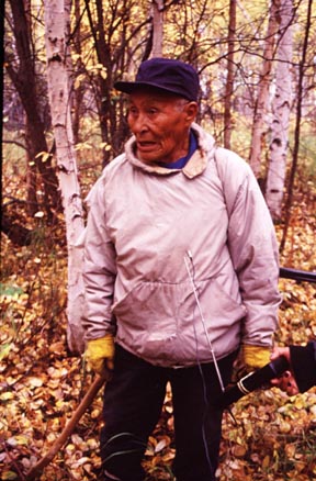 Jonathan David once told me when his wife was alive him and her would spend the whole winter out in old Minto hunting and trapping. The only time they would come back to our village was on Christmas Eve. He said, They would make tea and eat meat for their dinner. Sometimes it was hard for them but they always managed to stay alive during the winter nights. He also said that he would bring his gun with him just in case he saw moose or wolves that would harm him. Another story about Jonathan is about the Honeymoon Island. Jonathan said, "Way over on the other side of that timber and on the other side of the big hill there, that's where people used to be." Oh they had camp there all the time." And they move sometimes they move there in the fall." They stay there til winter then they move down for Thanksgiving." The old people that lived there are buried their and some yung people too. 6,7years old." His father-in-law, and his mother was buried there too. |