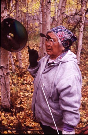 A long time ago, when our elders were young, people used to go ratting for muskrats. They lived in different camps. That was the way they made money. Selling muskrat skins. They usually went in early April. And stayed there till after breakup or till they quit ratting. The camp was called 'gather up camp.' They called it that cause that's where everyone came togather.