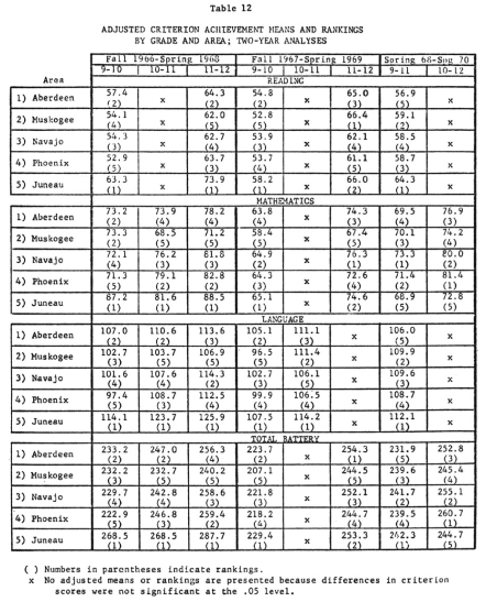 Adjusted Criterion Means of Twelfth Grade Students Spring 1968-Spring