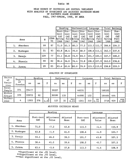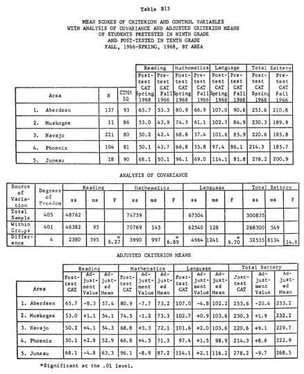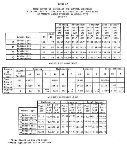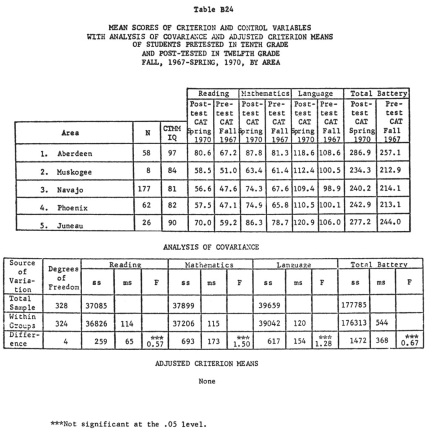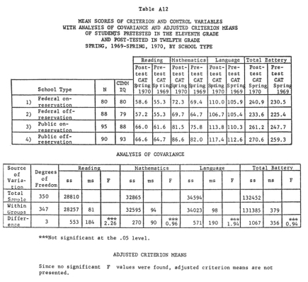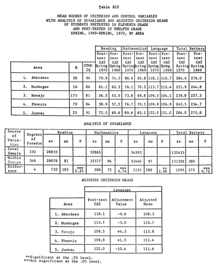 Analysis of Covariance and Adjusted Criterion Means of Twelfth