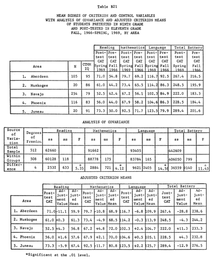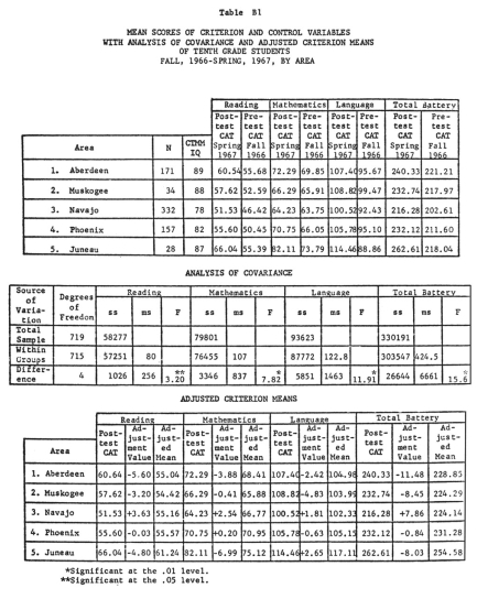 Analysis of Covariance and Adjusted Criterion Means of Students