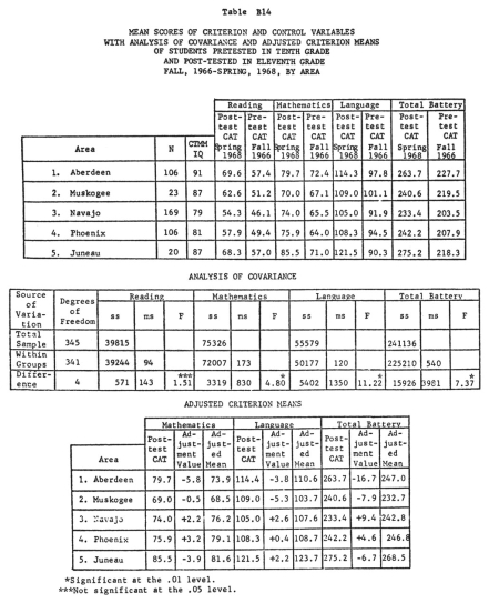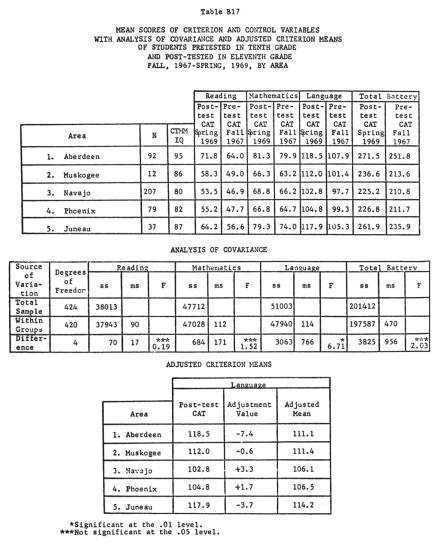 and Post-Tested in Eleventh Grade Fall 1967-Spring 1969, By Area