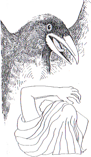 and the next morning when Raven woke up, he saw his wife sitting on the floor
